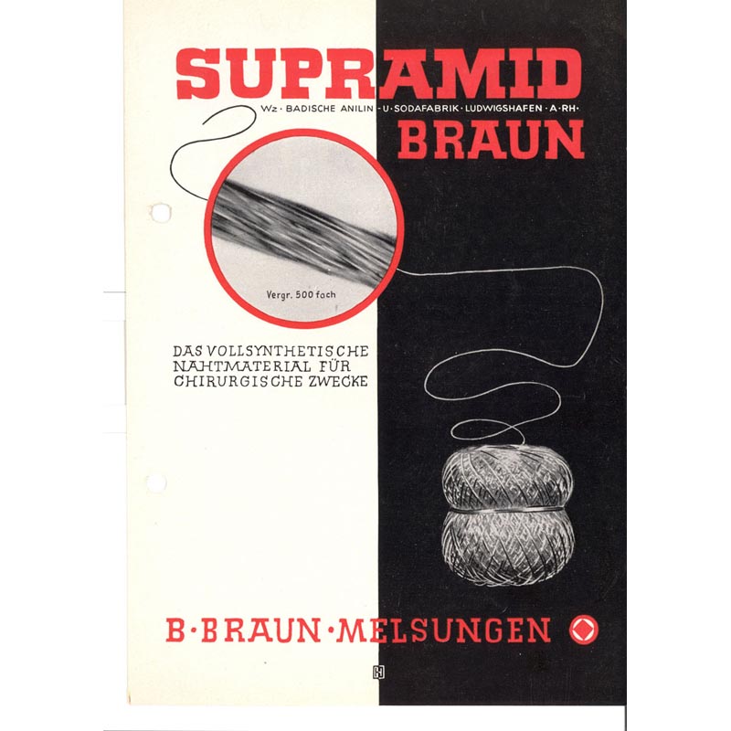 Questa era solo una delle tappe fondamentali nella storia della terapia per il trattamento delle lesioni. Ma non è finita qui: nel 1935 fu lanciato con successo il materiale sintetico non assorbibile Synthofil A. Altri esempi di trattamento delle ferite moderne sono Supramid, un materiale per suture a base di nylon; Histoacryl, un adesivo tissutale per la chiusura di ferite cutanee; Monosyn, un materiale per suture sintetiche assorbibili in gliconato. Al giorno d'oggi sono ancora in fase di sviluppo nuove procedure rivoluzionarie attraverso lo scambio di idee tra ricerca scientifica e pratica clinica.