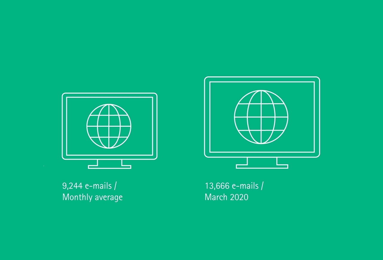 In B. Braun, il maggior numero possibile di dipendenti lavora anche da casa per prevenire infezioni in azienda. In sole due settimane, ogni sede in tutto il mondo passa alle videoconferenze.Questa è una situazione nuova per molti dipendenti e una sorta di banco di prova, con i colleghi che devono affrontare un’ondata di richieste da parte dei clienti mentre lavorano da casa. Ecco cosa è successo presso la sede in Brasile: A marzo, B. Braun ha ricevuto oltre 13.000 e-mail proprio in questa sede, con un aumento di quasi il 50%. Tuttavia, bisogna fare tutto il possibile per rimanere in contatto con clienti e partner durante la pandemia, perché la comunicazione è tutto in una pandemia. Il reparto Comunicazione risponde a questa situazione con l'hashtag "#wearebusy—because our customers are". In una campagna su larga scala, i dipendenti riferiscono delle loro nuove routine lavorative quotidiane da casa.