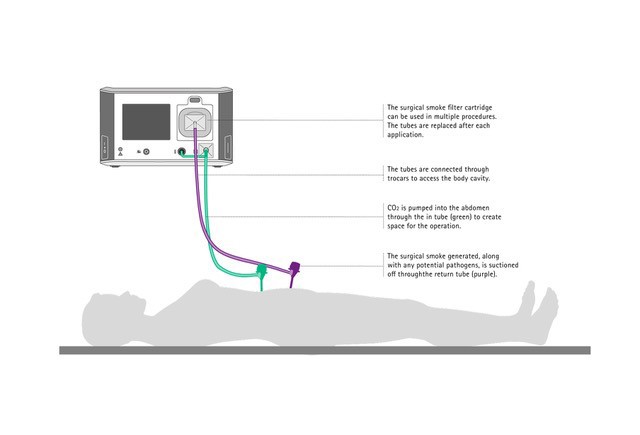 La pandemia ha innumerevoli impatti sul sistema sanitario. Alcuni, come l'aumento della necessità di letti per terapia intensiva, sono prevedibili. Altri sono sorprendenti, come la nuova richiesta di un dispositivo chiamato insufflatore, che può ridurre la diffusione di virus mortali in sala operatoria. Questo dispositivo viene utilizzato durante la laparoscopia, una procedura chirurgica che utilizza piccole incisioni praticate nell'addome per inserire una videocamera e strumenti chirurgici. Tuttavia, affinché i chirurghi possano lavorare, hanno bisogno di spazio per l'intervento. Ed è qui che entra in gioco l'insufflatore: un dispositivo che pompa la CO2 nella cavità addominale utilizzando un tubo. Questi tipi di procedure mininvasive sono in aumento da anni e sono diventati lo standard per la chirurgia della vescica e dell'intestino. I chirurghi solitamente lavorano con strumenti chirurgici elettrici ad alta frequenza che utilizzano la corrente per tagliare i tessuti e cauterizzare i vasi sanguigni. Questo produce un cosiddetto fumo chirurgico, che l'insufflatore può evacuare attraverso un secondo tubo.