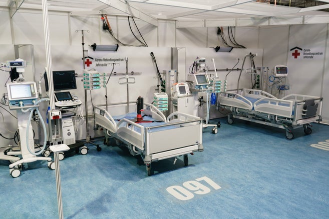 In sole sei settimane, in uno spazio espositivo della Messe di Berlino viene allestito un ambulatorio di emergenza per scaricare la pressione dagli altri ospedali in base alle necessità. La struttura può contenere fino a 500 pazienti in terapia intensiva. B. Braun aiuta le strutture mediche, principalmente fornendo pompe per infusione critiche. Dalla sua apertura, la clinica è stata in modalità standby. Non ha ancora trattato alcun paziente, ma può prenderlo in carico in qualsiasi momento.