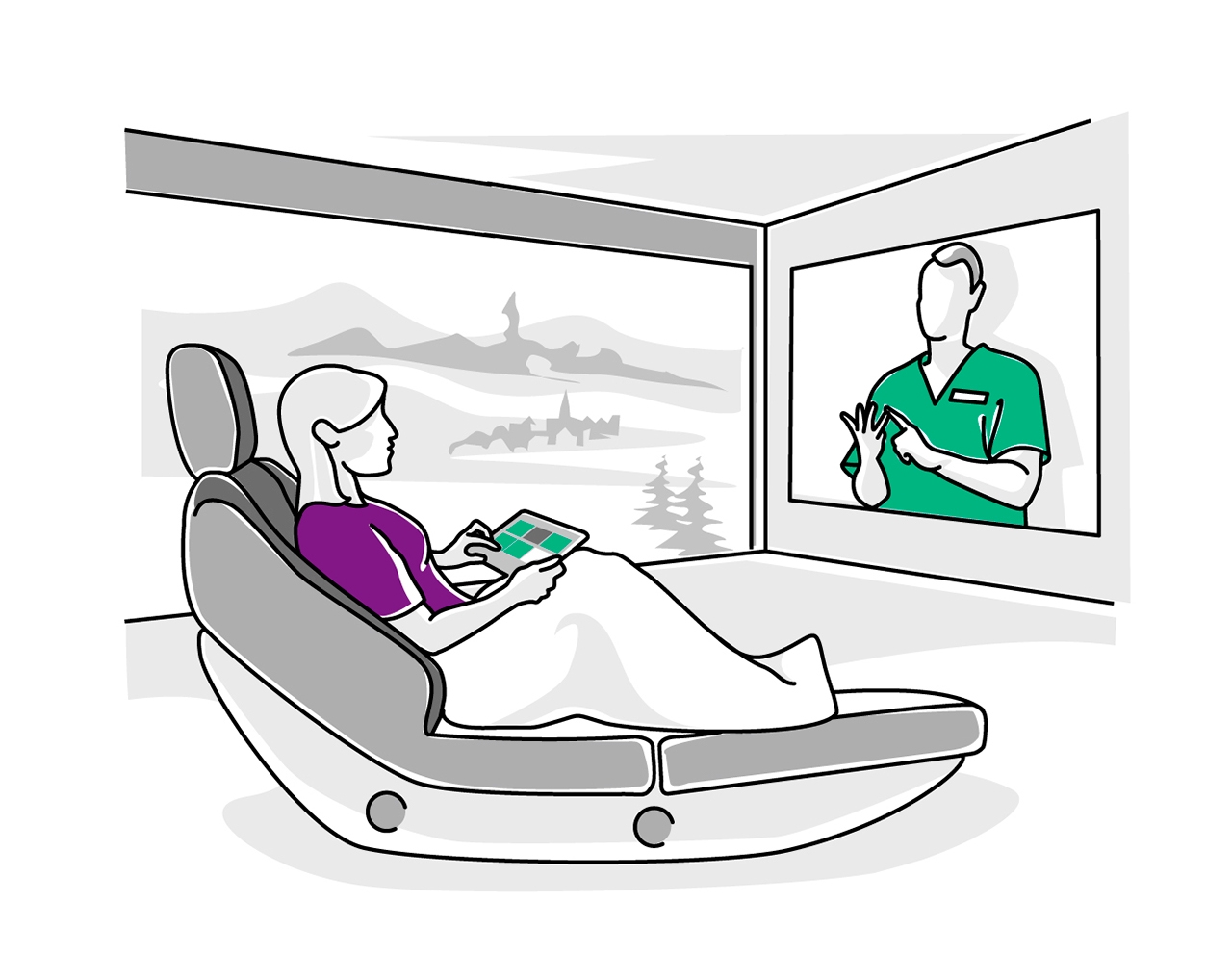 Quando Karla si sveglia nel letto dell'ospedale, è da sola in una stanza spaziosa, con un'ampia finestra rivolta a sud. Nel 2040 ci saranno molte più camere singole e alloggi più confortevoli rispetto a oggi. "Quando le persone hanno molta luce, sono indisturbate e dormono bene, si riposano più rapidamente", afferma il progettista ospedaliero Lohfert Praetorius. "E i ricoveri più brevi in ospedale sono vantaggiosi sia per il paziente, perché può tornare a casa prima, sia per il sistema sanitario".