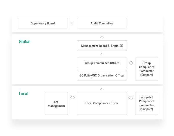 Le società B. Braun percepiscono la compliance come un compito manageriale, supportato da una struttura di reporting integrata. A questo proposito, la direzione si coordina regolarmente con il Compliance Officer (o il deputy), che, se necessario, coinvolge il Group Compliance Office.