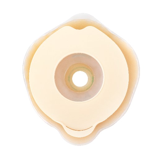 Il protettore cutaneo, dalla particolare struttura a forma di fiore, protegge i lati dello stoma e si adatta alle eventuali pieghe cutanee, risultando comodo e flessibile.