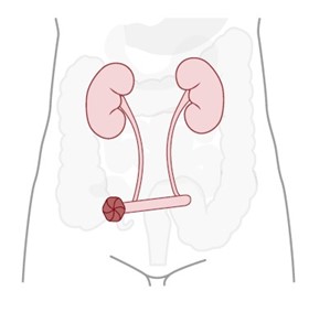 Urostomia del condotto ilealeUna parte dell’intestino tenue, l’ileo, viene isolata e chiusa ad una estremità. Viene quindi creato il cosiddetto “condotto ileale”. In questa procedura, gli ureteri vengono rimossi dalla vescica e uniti alla parte ileale, che servirà da condotto allo stoma creato nell’addome.
