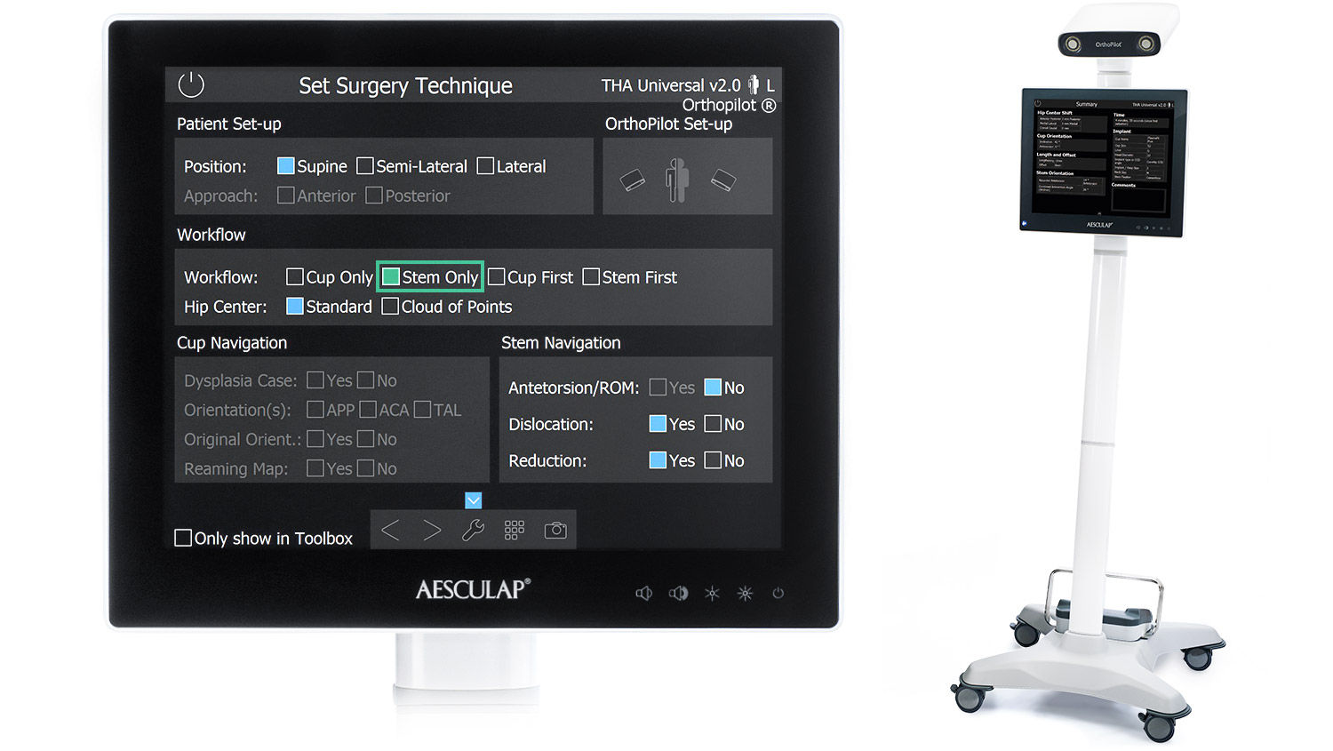 Il Workflow Stem only (Solo stelo) si concentra esclusivamente sulla lunghezza della gamba e sull'offset. Può essere d'aiuto durante la difficile misurazione della lunghezza della gamba nella chirurgia dell'anca in posizione laterale senza ulteriori complicati passaggi.