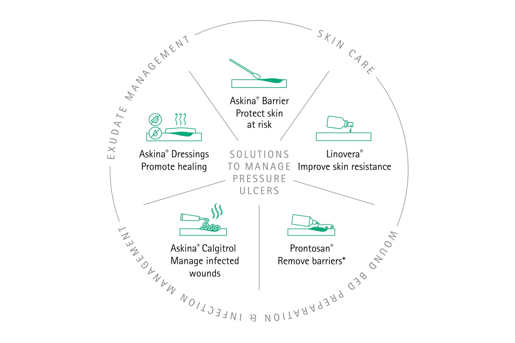 Tutti vogliono evitare le ulcere da pressione. Negli ultimi anni sono stati compiuti notevoli progressi in quest'area. Ciononostante, le ulcere da pressione restano una sfida. B. Braun offre diverse soluzioni, tra cui prodotti per la cura della cute, la preparazione del letto della ferita e la gestione delle infezioni, nonché la gestione dell'essudato. Agire fin dall'inizio aiuta a prevenire l'aggravamento delle ulcere da pressione esistenti e a supportare il processo di guarigione.