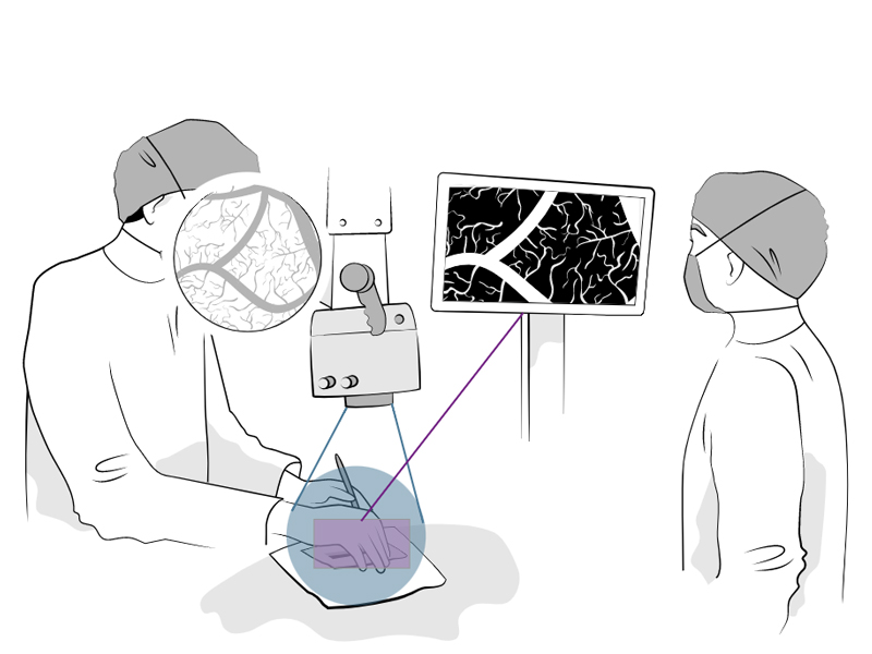 Solitamente, è possibile visualizzare sia l'immagine fluorescente che l'immagine a luce bianca, ma non entrambe contemporaneamente. La fluorescenza ICG è visualizzata solo in 2D. [3]
