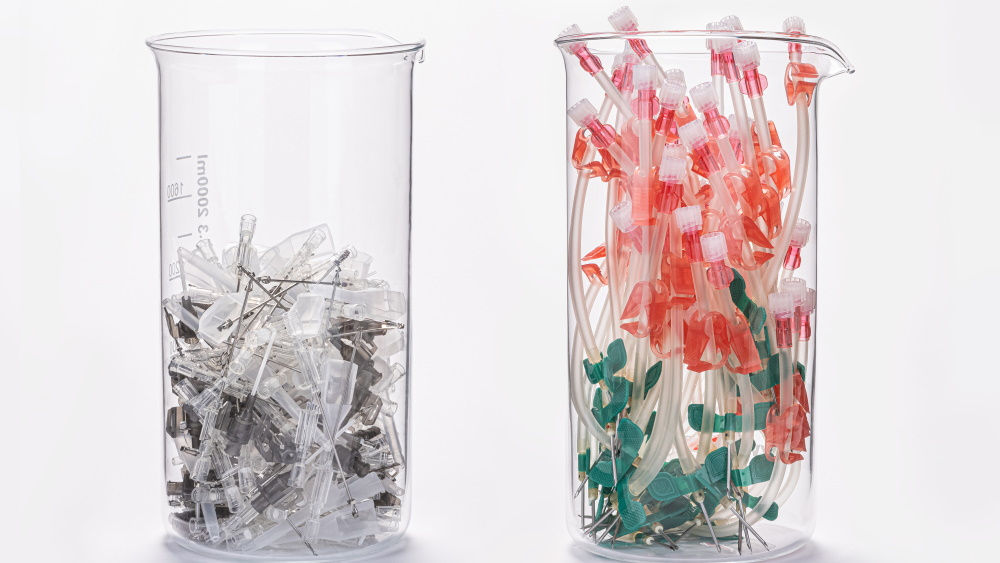 Rispetto a un ago in acciaio convenzionale, Diacan Flex ® pesa 6,66 grammi in meno. In media, un paziente richiede 156 trattamenti all'anno, utilizzando due aghi ogni volta. Ciò significa che i rifiuti annuali contaminati per paziente possono essere ridotti di circa 2,08 chilogrammi.