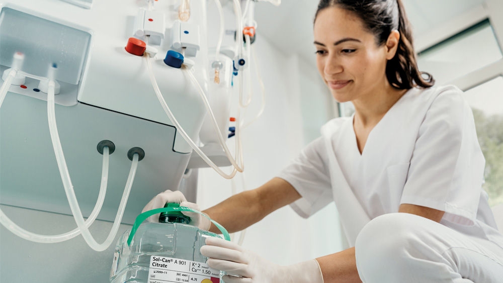 Conferma Sì, sono un operatore sanitario. Cancella No, non sono un operatore sanitario.L'emodialisi è una procedura articolata. A causa dell'elevato livello di complessità e della carenza attuale di personale infermieristico, è fondamentale ottimizzare il più possibile i processi. È altrettanto importante ridurre il carico di lavoro degli infermieri che svolgono un ruolo importante nella dialisi. Dopotutto, un carico di lavoro inferiore può significare più tempo per l'assistenza al paziente. Pertanto, ogni processo di lavoro semplificato può contribuire a creare un ambiente di lavoro migliore. La gestione più semplice dei nuovi contenitori influisce sul benessere del personale infermieristico, generando al contempo meno rifiuti e riducendo l'impatto ambientale.